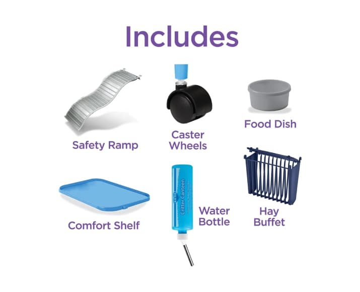 Give your little buddy a place to hang his hat with the Kaytee My First Home 2-Level Pet Habitat. Ideal for rabbits and guinea pigs, this pet habitat features chew-proof latches and a large door for easy access.
